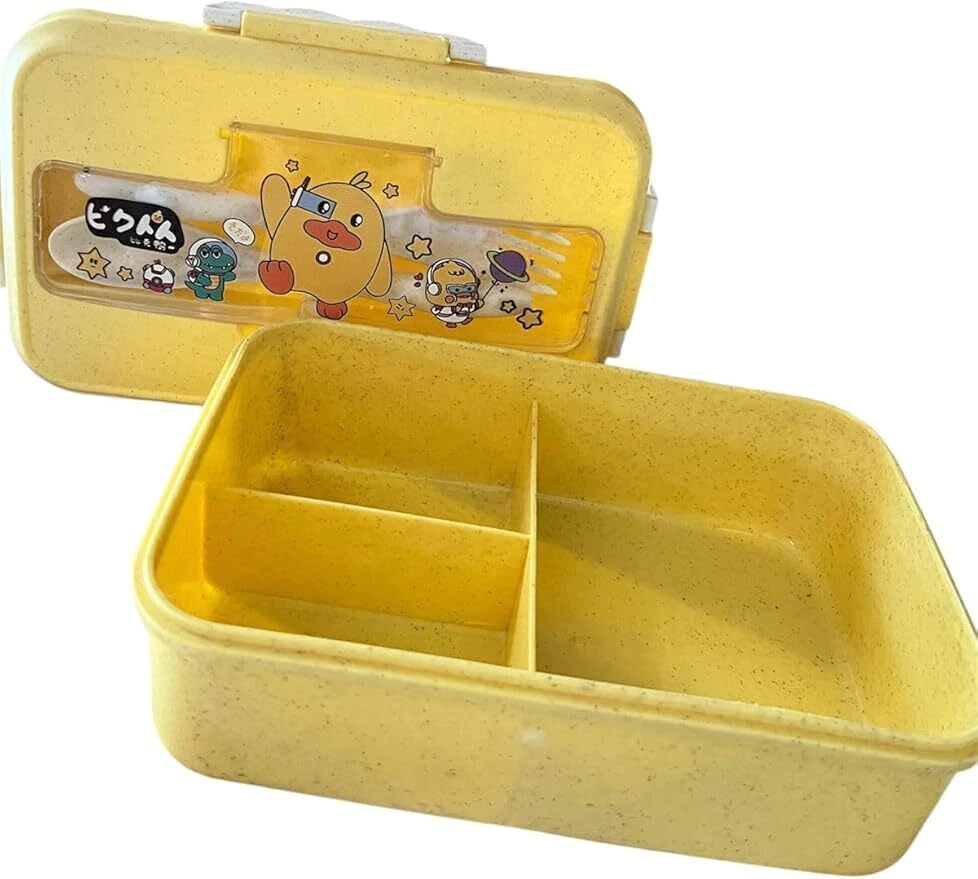Descrição? A Marmita Lancheira Fofa 3 Divisórias Retangular com Talheres 🍱💛✨ é perfeita para deixar os lanchinhos do dia a dia muito mais organizados e cheios de charme! Com design prático e cores suaves, ela conta com três compartimentos internos que mantêm os alimentos separadinhos, além de uma tampa decorativa transparente com ilustrações infantis super fofas. Ideal para rotina escolar, passeios e para quem ama produtos funcionais com jeitinho kawaii. Acompanha talheres e possui tamanho compacto que cabe facilmente na mochila!